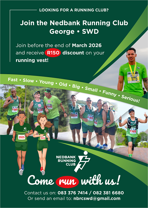 - Nedbank Running Club’s Time Trial on Tuesday 20 January 2026 at 18:00 at the NRC Club House, Meent Street, Heather Park, George. Please keep the receipt as proof of payment.
