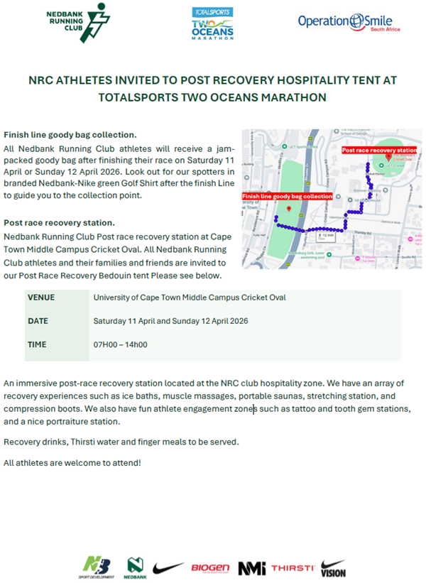 Nedbank running club Supports OPERATION SMILE in this years Totalsports Two Oceans Marathon